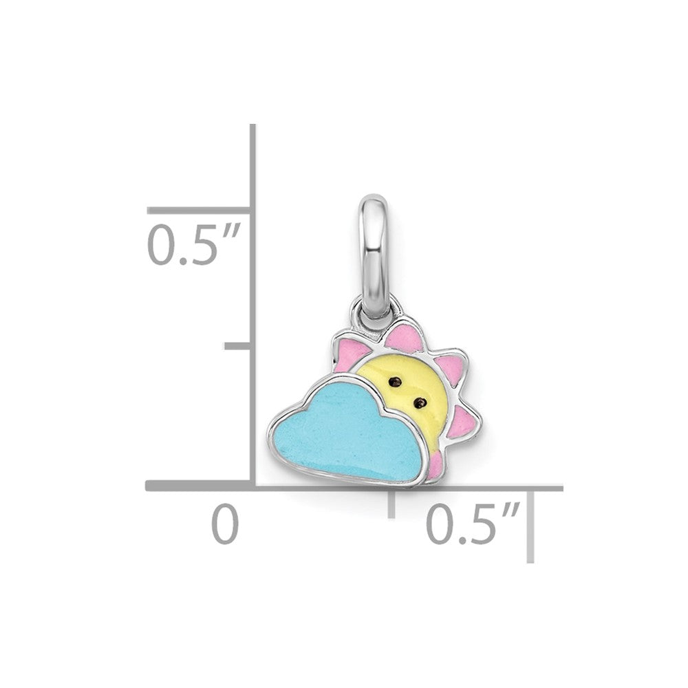 Sterling Silver Rhodium-plated Enameled Sun & Cloud Children's Pendant