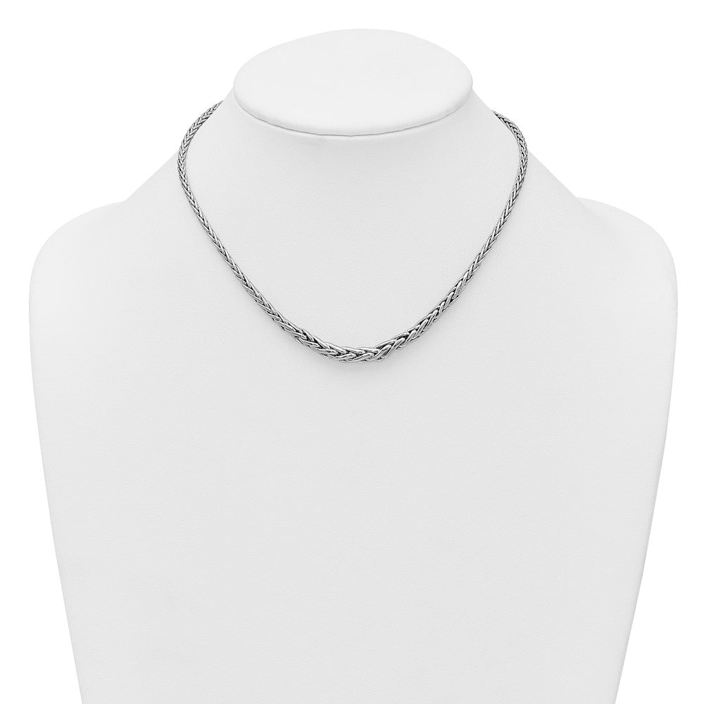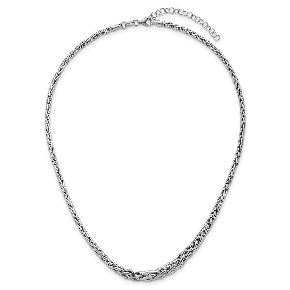 Sterling Silver Rhodium-plated Fancy Graduated Braided Link with Extender Necklace