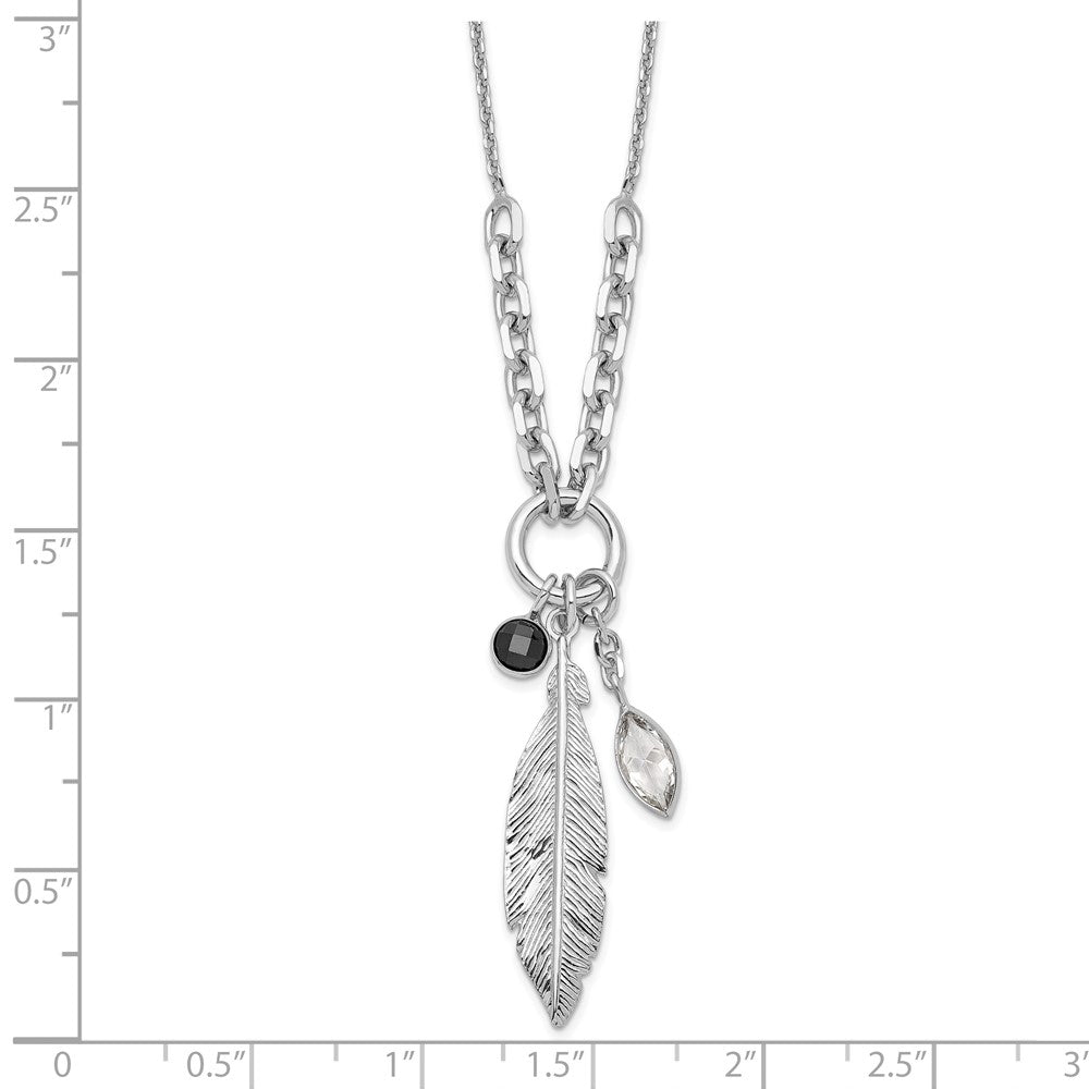 Sterling Silver Rhodium-plated Feather and CZ w/1 in Ext Necklace