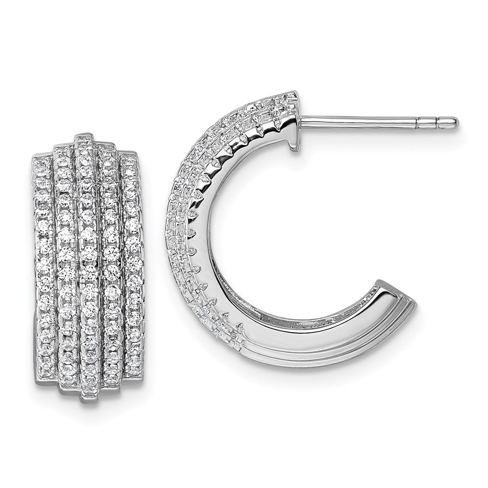 Sterling Silver Rhodium-plated Five Row J-Hoop Post Earrings