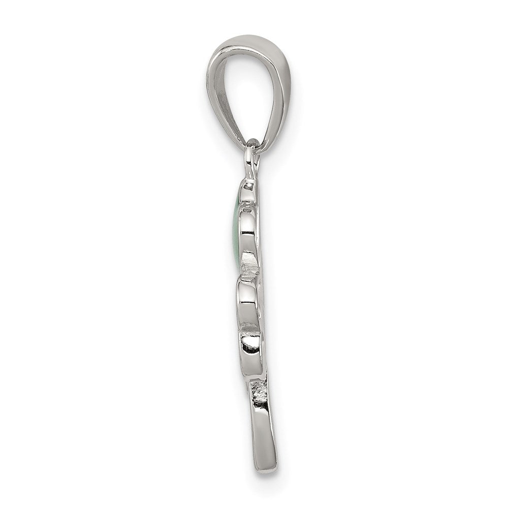 Sterling Silver Rhodium-plated Green Enameled Four Leaf Clover Pendant