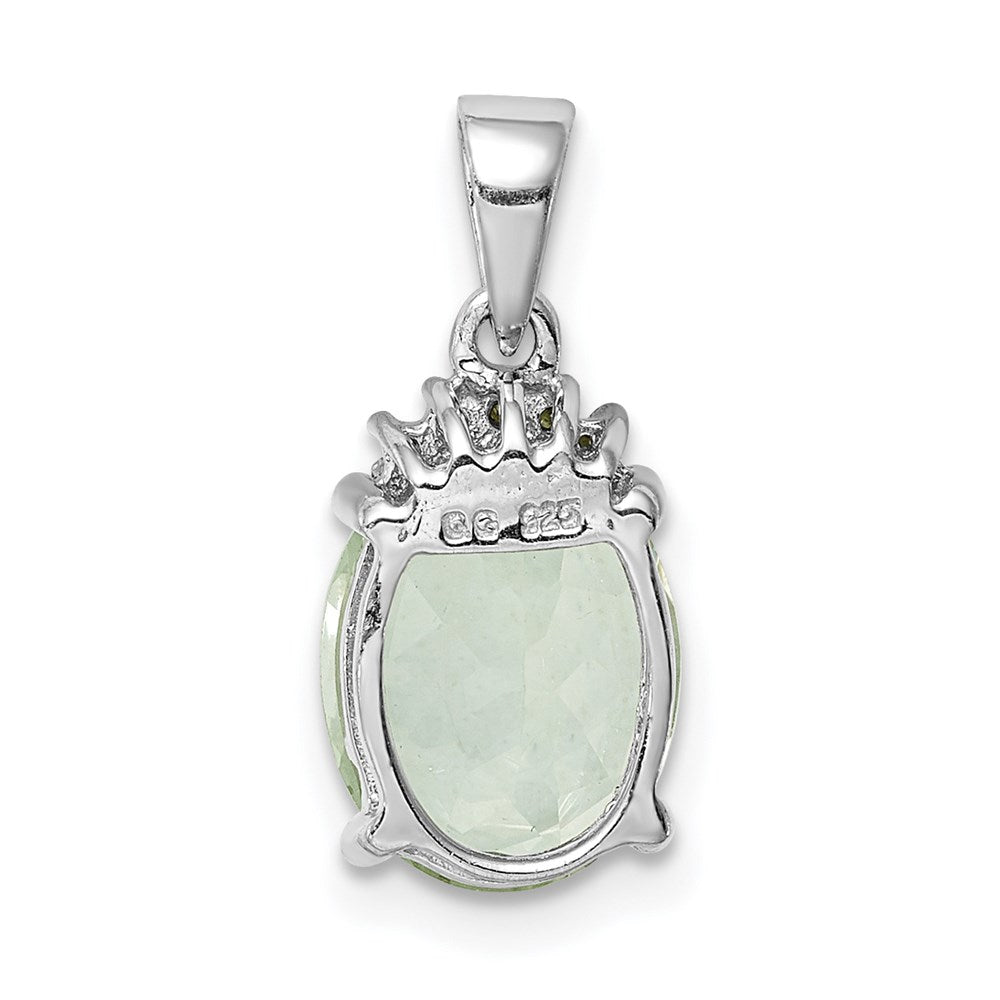 Sterling Silver Rhodium Plated Green Quartz and Diamond Pendant