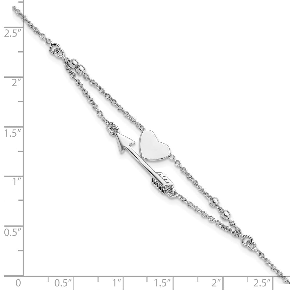 Sterling Silver Rhodium-plated Heart and Arrow 7.5in Bracelet