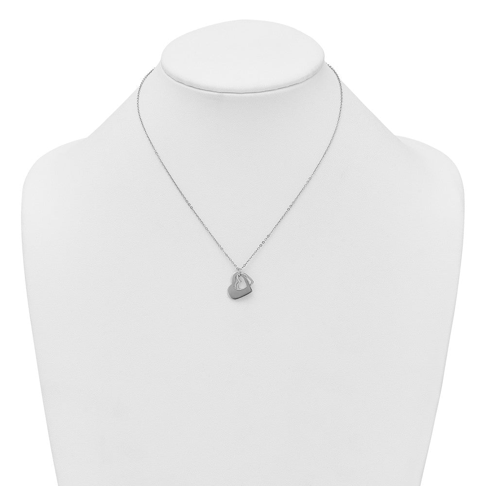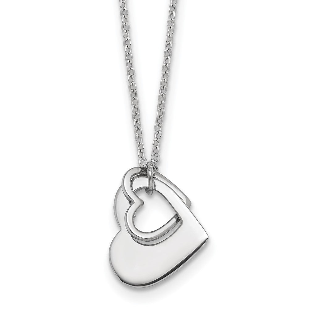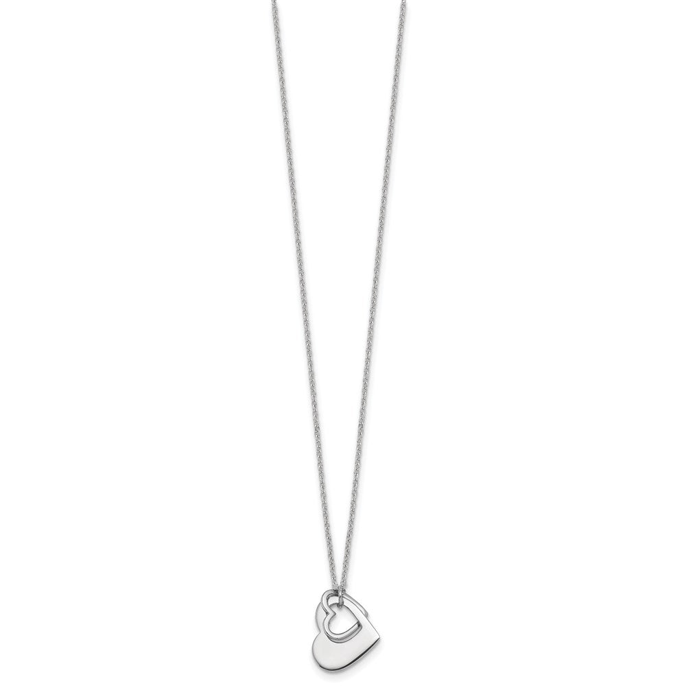 Sterling Silver Rhodium-plated Heart With Heart Cutout with Extension Necklace