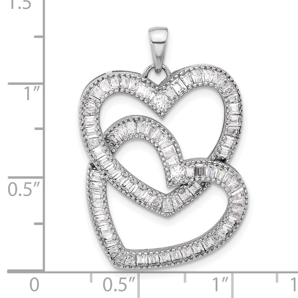 Sterling Silver Rhodium-plated Intertwined CZ Hearts Pendant