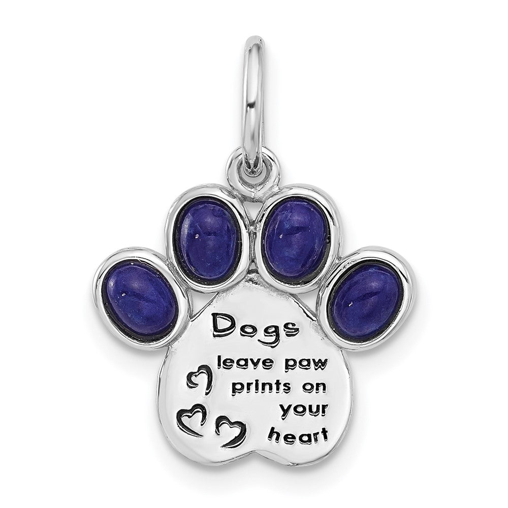 Sterling Silver Rhodium-plated Lapis Lazuli Enamel Paw Print Pendant