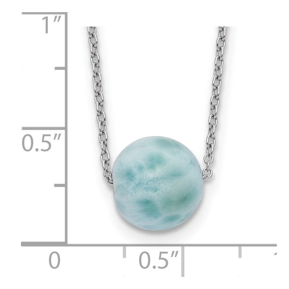 Sterling Silver Rhodium-plated Larimar Bead w/ 2in ext. Necklace
