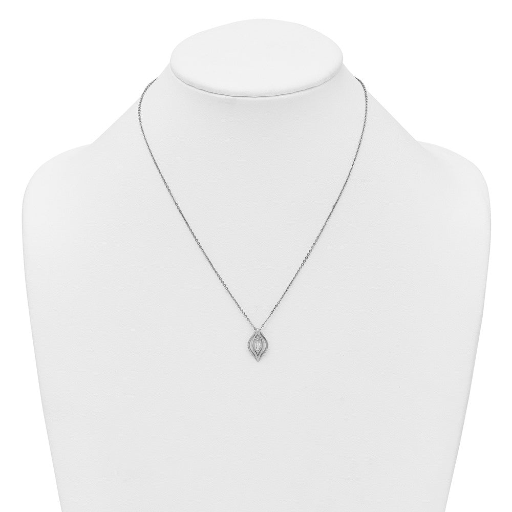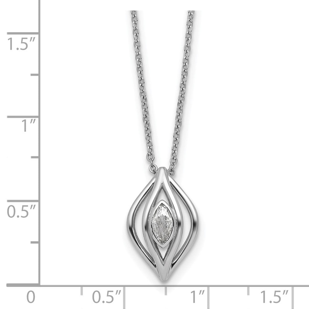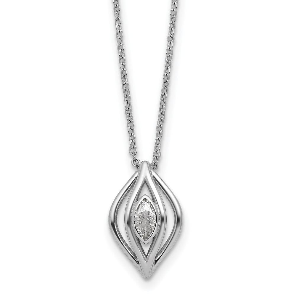 Sterling Silver Rhodium-plated Marquise CZ Polished Fancy Oval Necklace