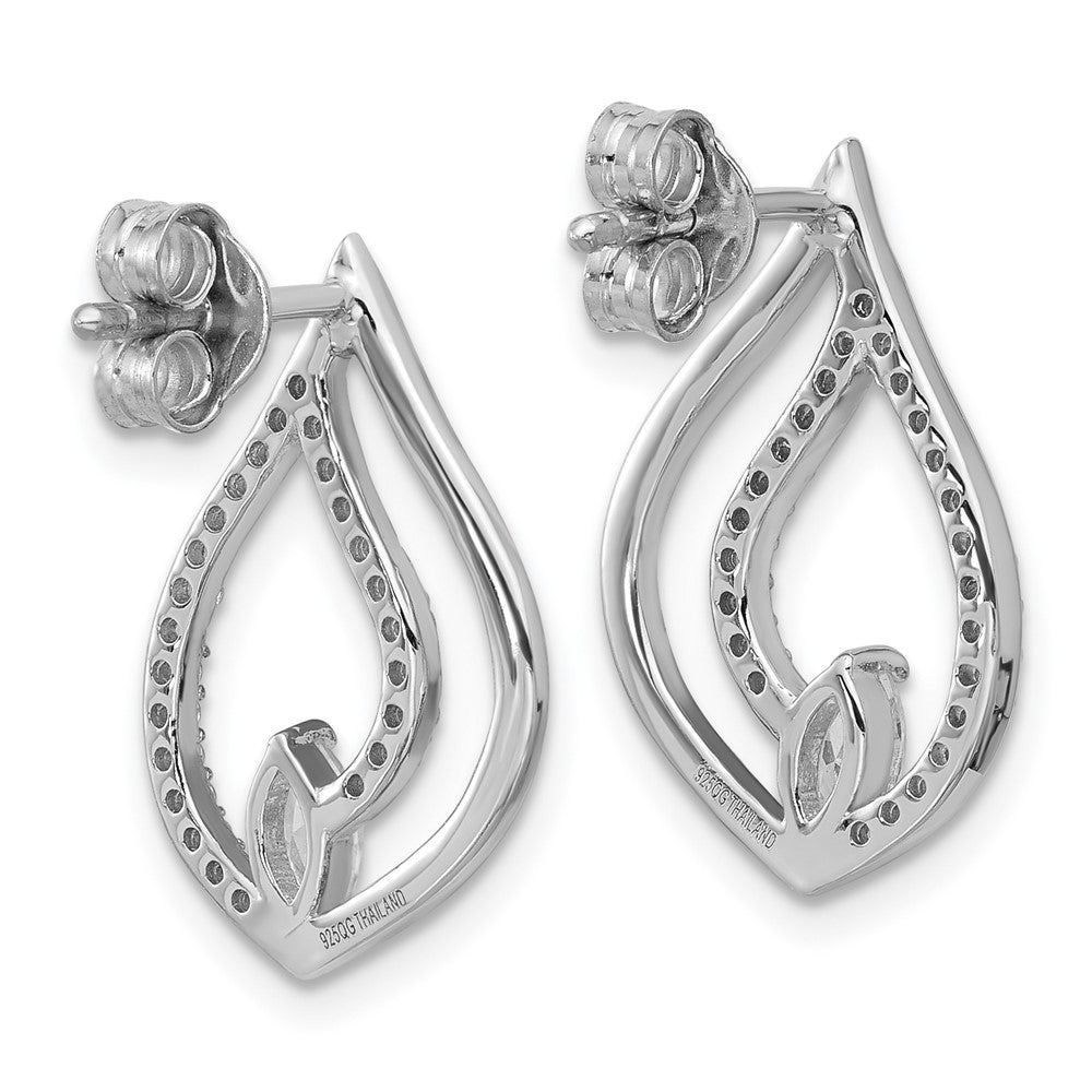 Sterling Silver Rhodium-plated Marquise CZ Polished Teardrop Post Earrings