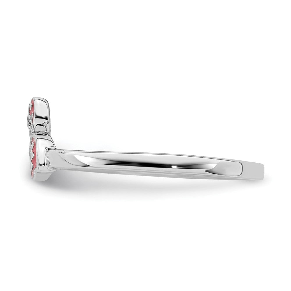Sterling Silver Rhodium-plated Multi-color Enameled Flamingo Children's Ring