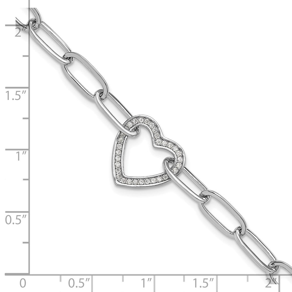Sterling Silver Rhodium-plated Paperclip CZ Heart with 1in ext. Bracelet