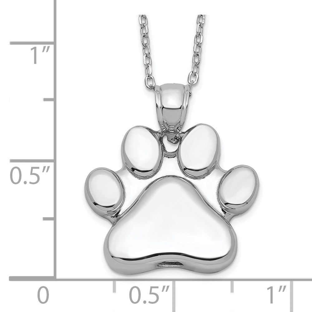 Sterling Silver Rhodium-plated Paw Print Ash Holder 18in Necklace