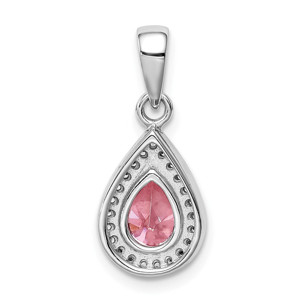 Sterling Silver Rhodium Plated Pink and Clear CZ Pendant