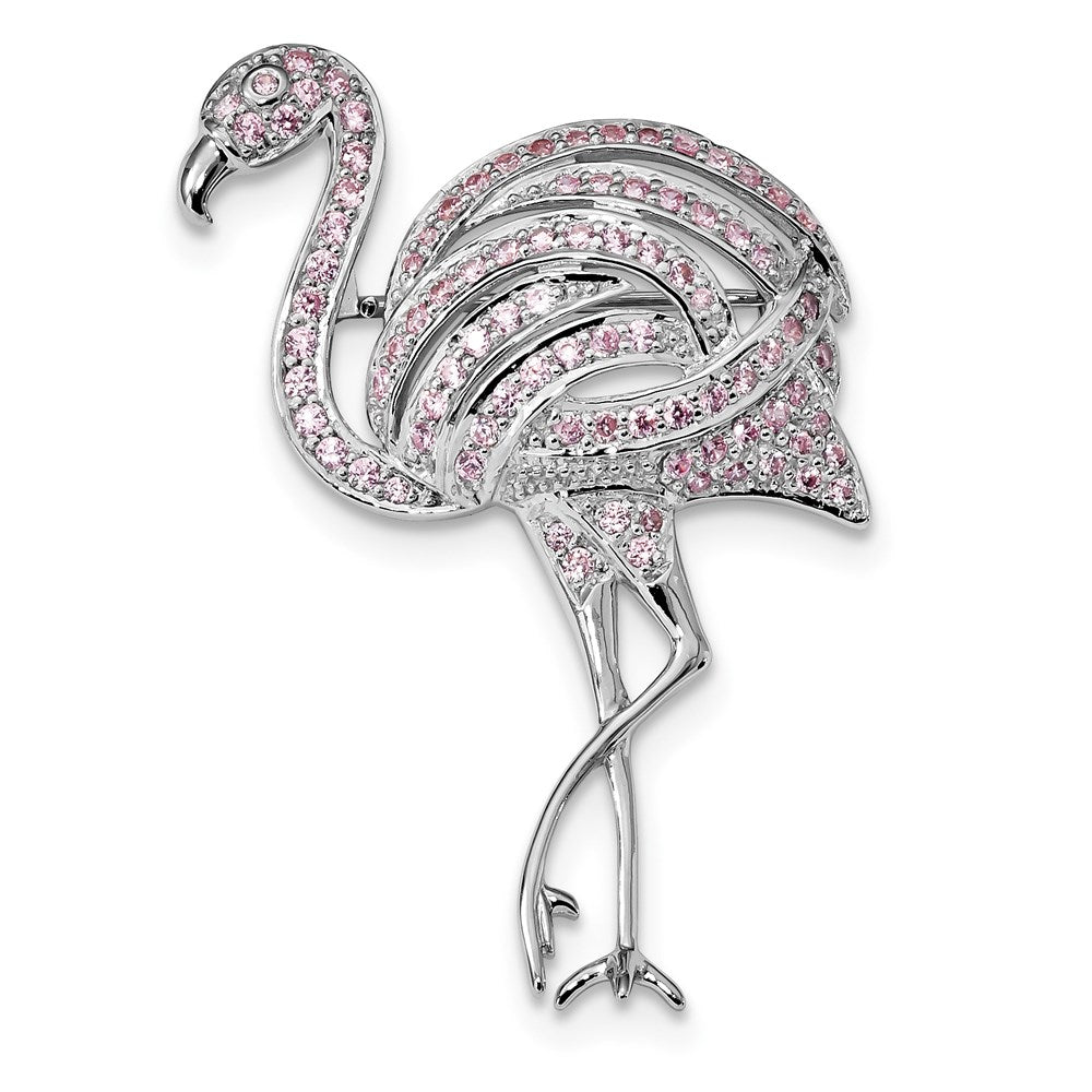 Sterling Silver Rhodium-plated Pink CZ Flamingo Pin Brooch