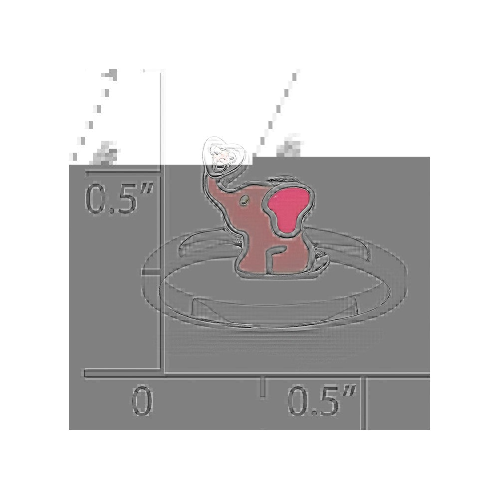 Sterling Silver Rhodium-plated Pink Enamel & CZ Elephant Children's Ring