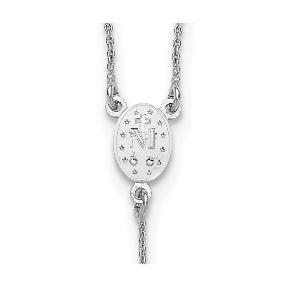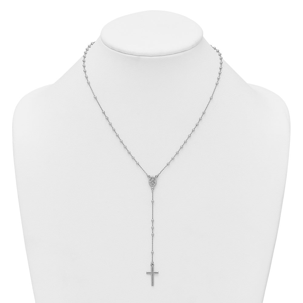 Sterling Silver Rhodium-plated Polished 17. with 1. extender Rosary Necklace