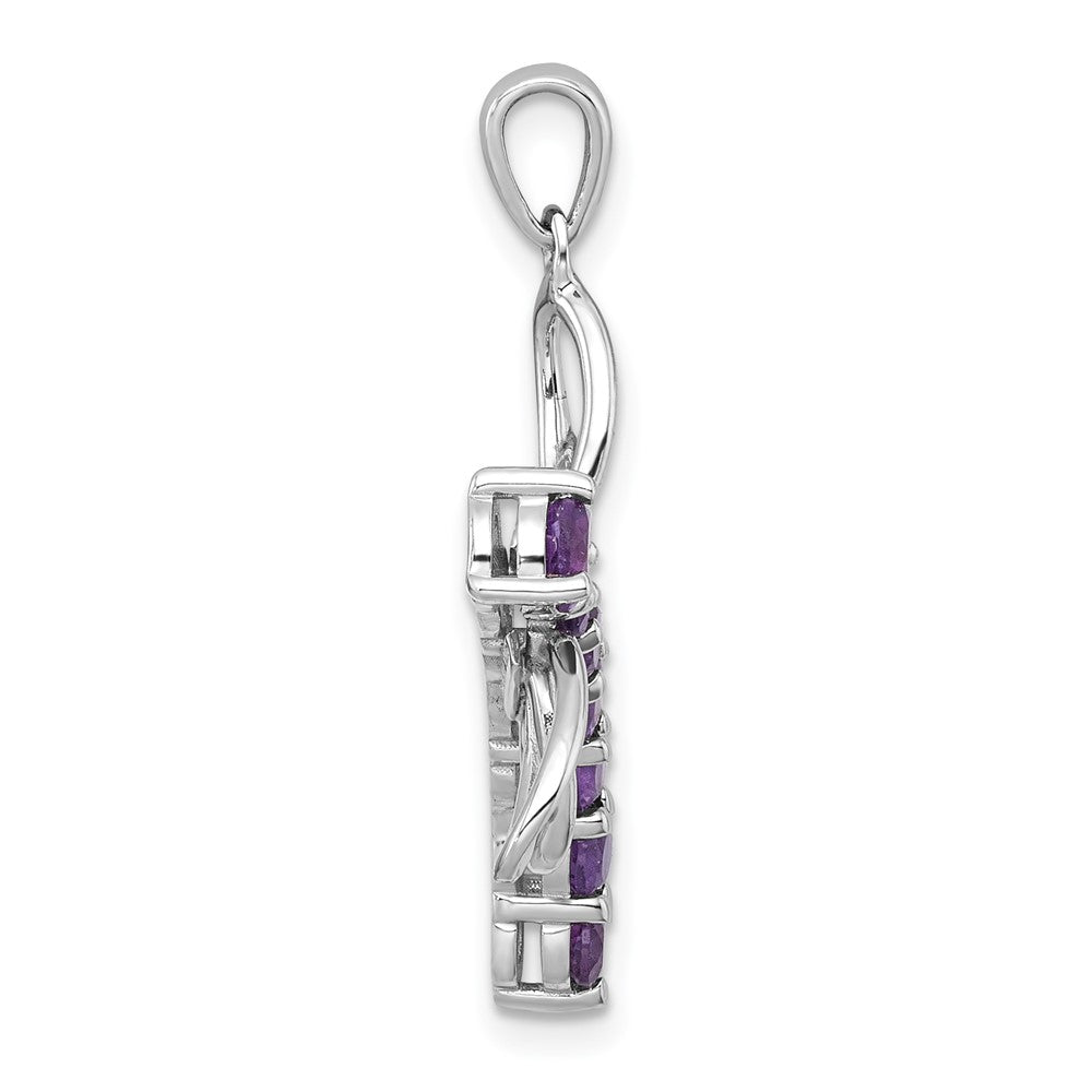 Sterling Silver Rhodium-plated Polished Amethyst Dragonfly Pendant