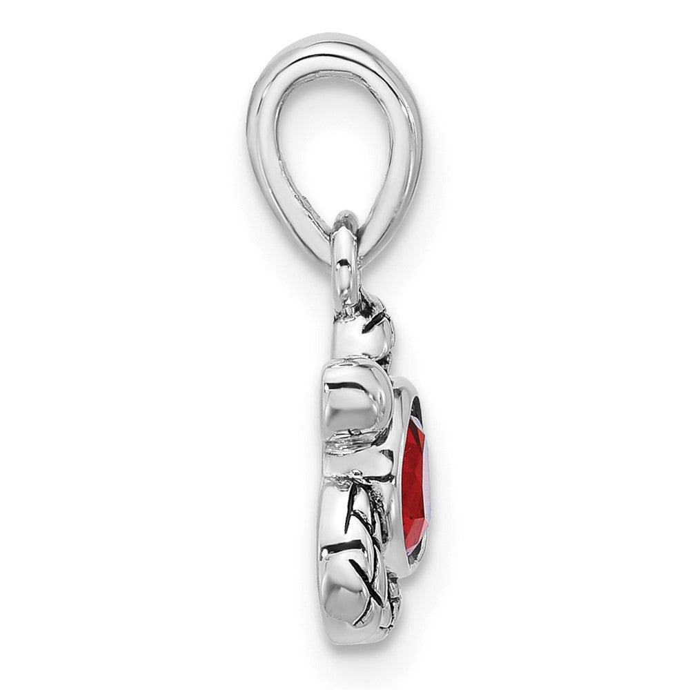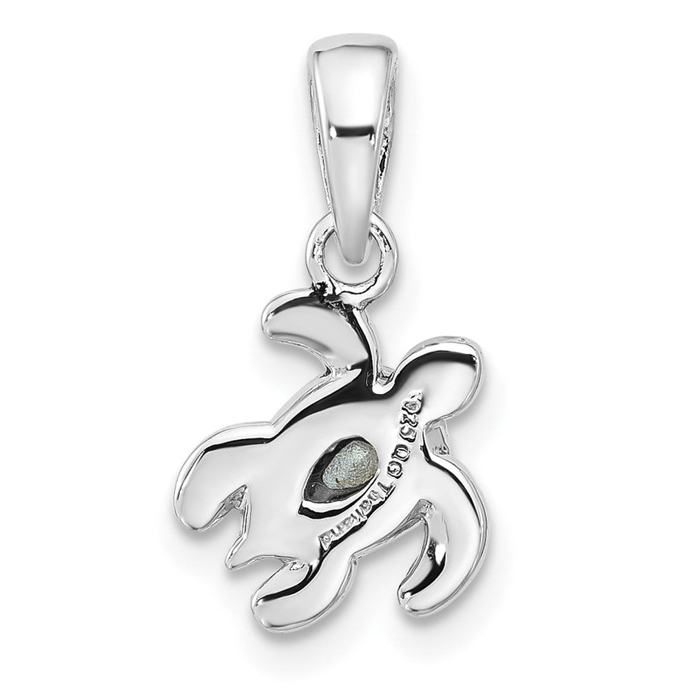 Sterling Silver Rhodium-plated Polished and Antiqued Crystal July Birthstone Turtle Pendant