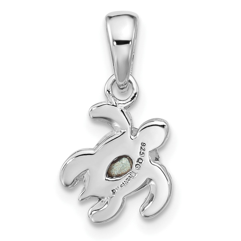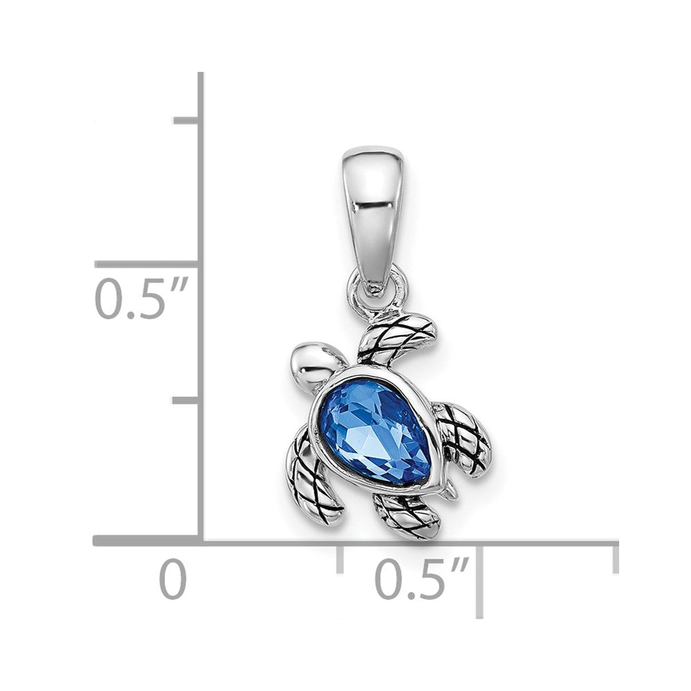 Sterling Silver Rhodium-plated Polished and Antiqued Crystal September Birthstone Turtle Pendant