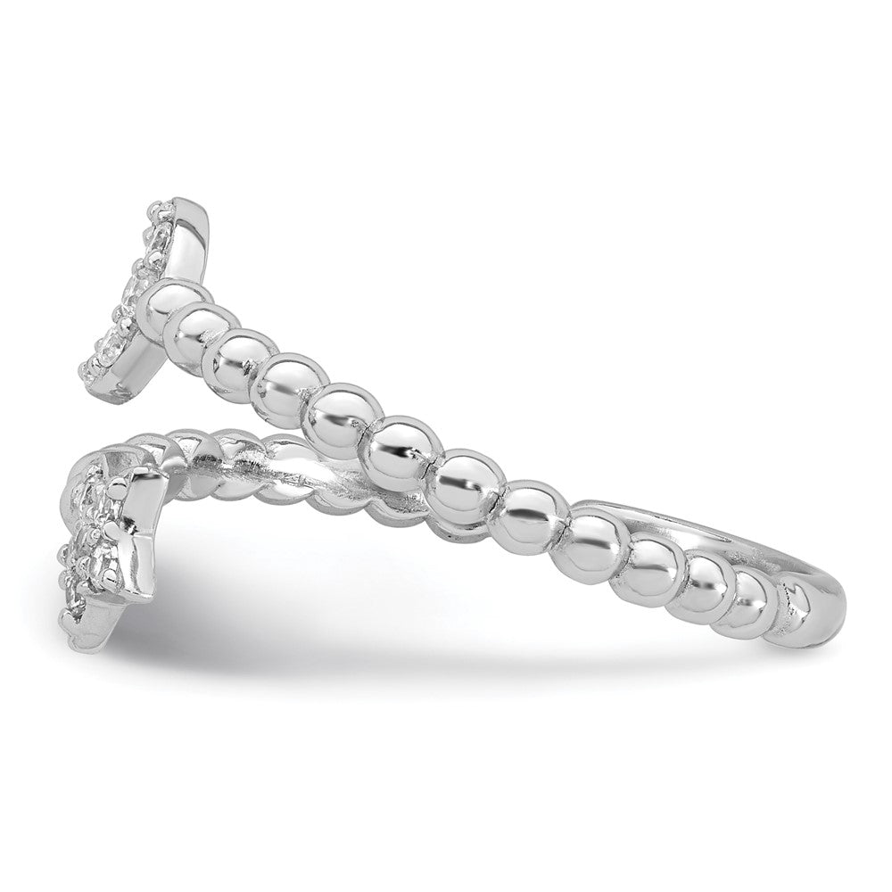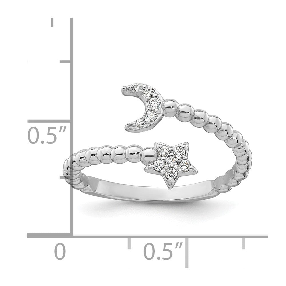 Sterling Silver Rhodium-plated Polished and Beaded Adjustable CZ Moon and Star Size 7 Ring