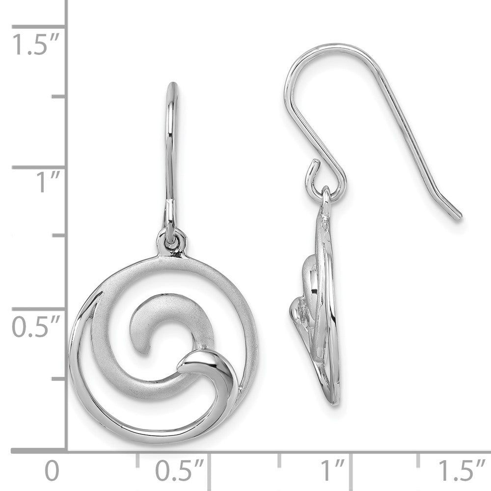 Sterling Silver Rhodium-Plated Polished and Brushed Double Wave Dangle Earrings