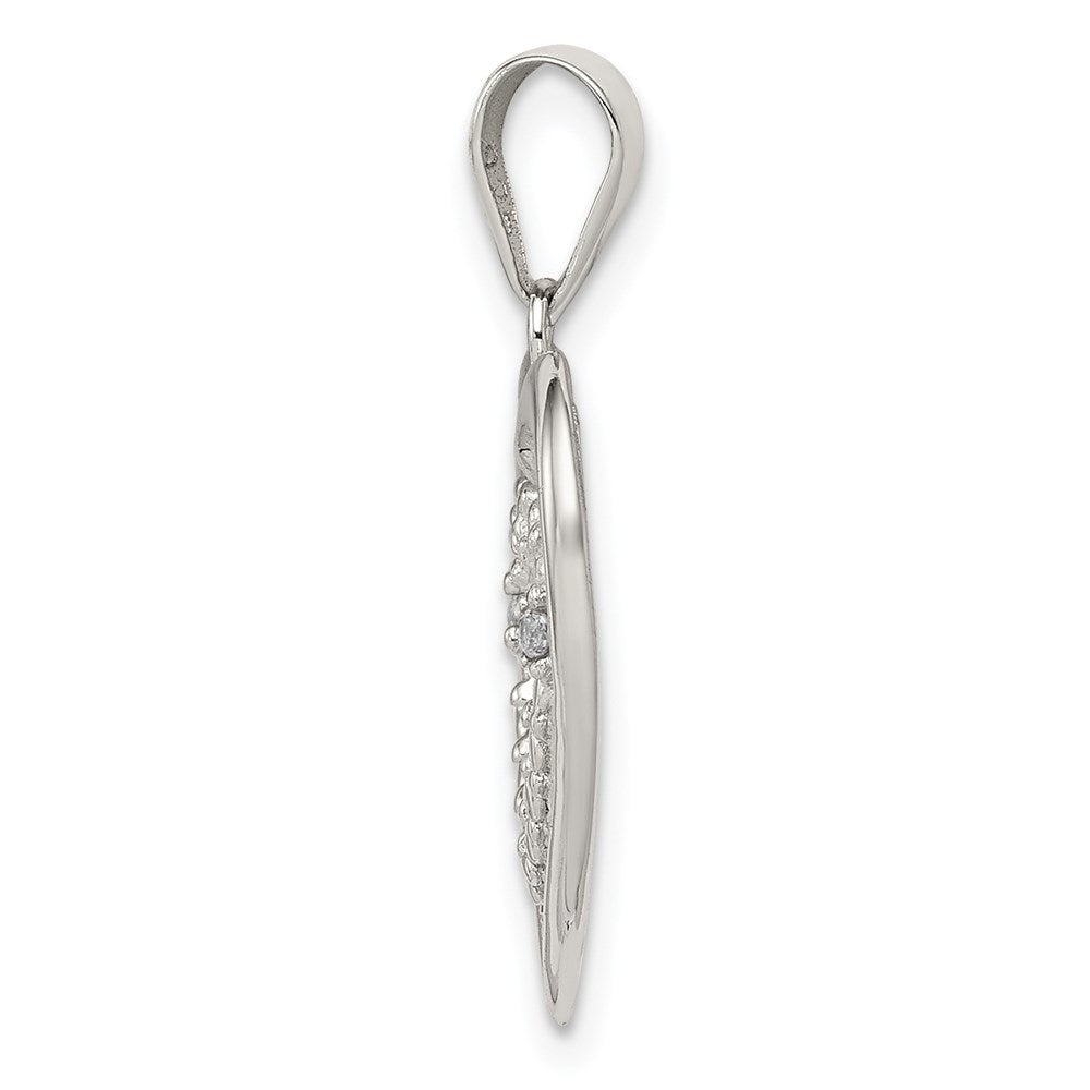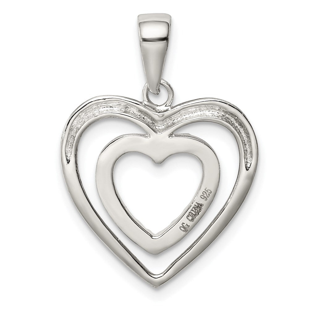 Sterling Silver Rhodium Plated Polished and CZ Double Heart Pendant