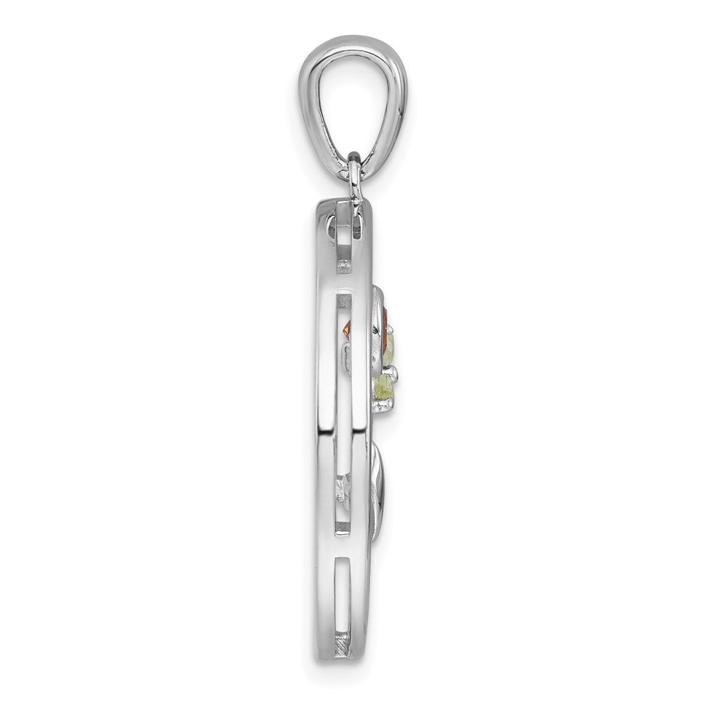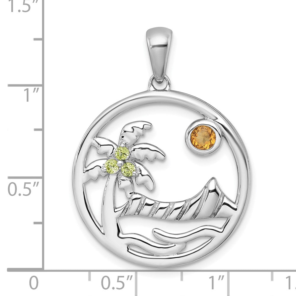 Sterling Silver Rhodium-plated Polished and Grooved Citrine and Peridot Beach Scene Circle Pendant