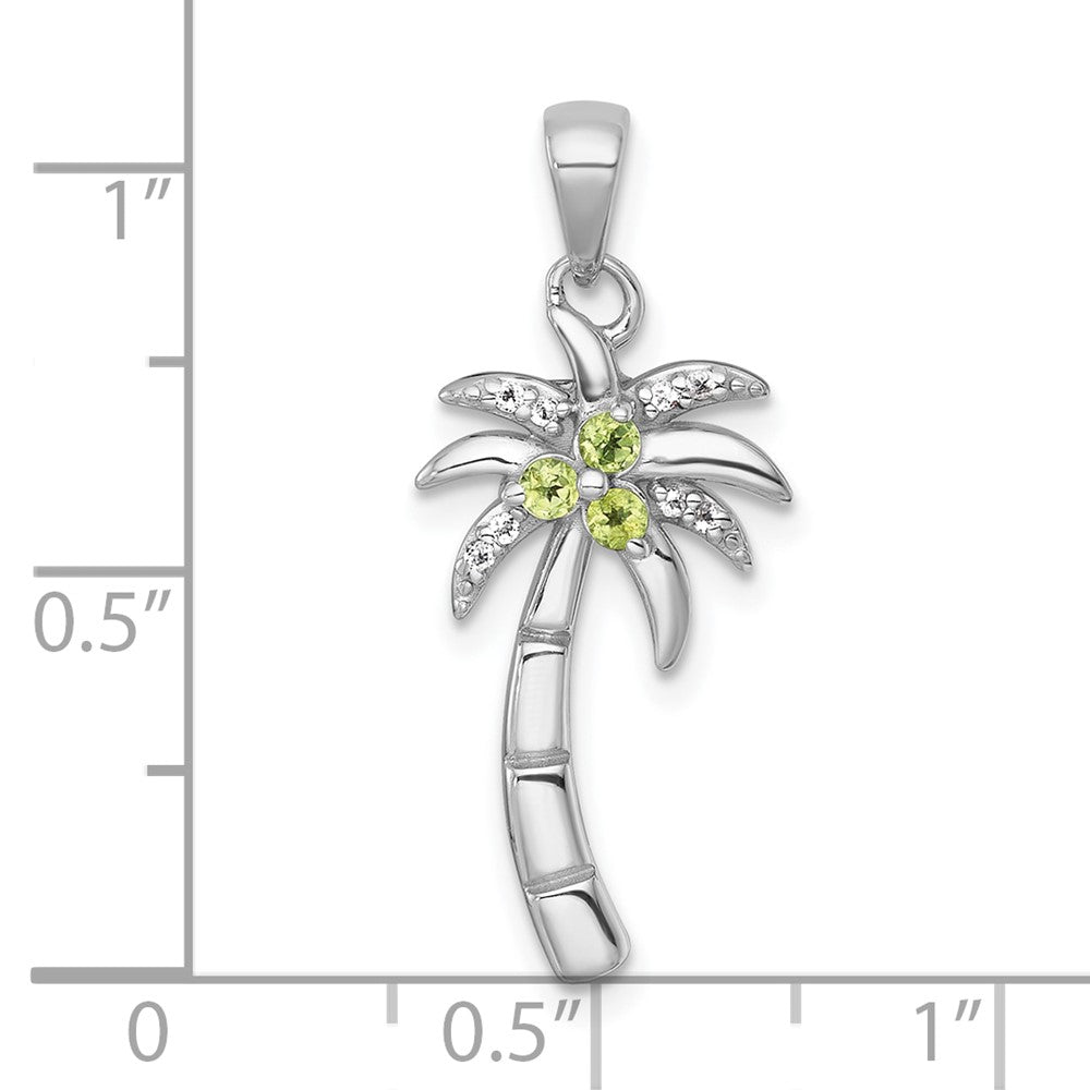 Sterling Silver Rhodium-plated Polished and Grooved Peridot and White Topaz Palm Tree Pendant