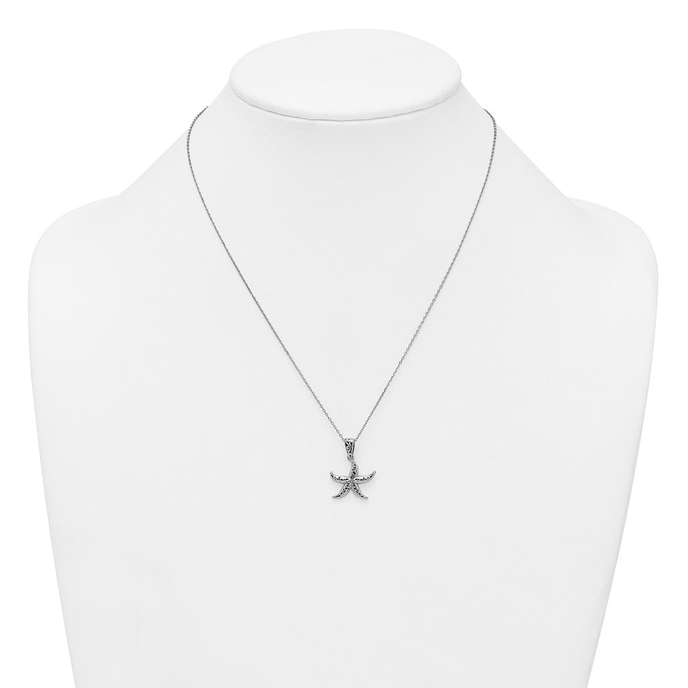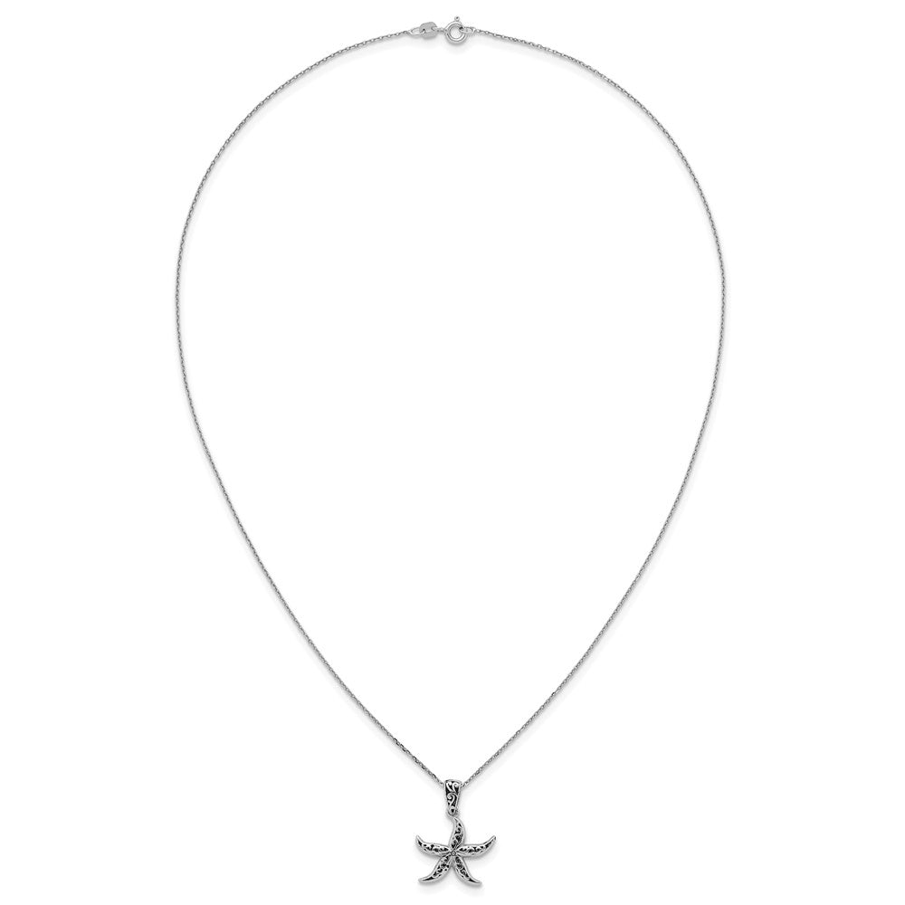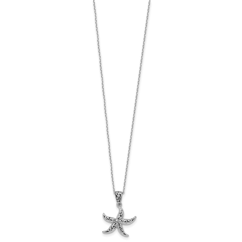 Sterling Silver Rhodium-plated Polished and Oxidized Filigree Starfish Necklace