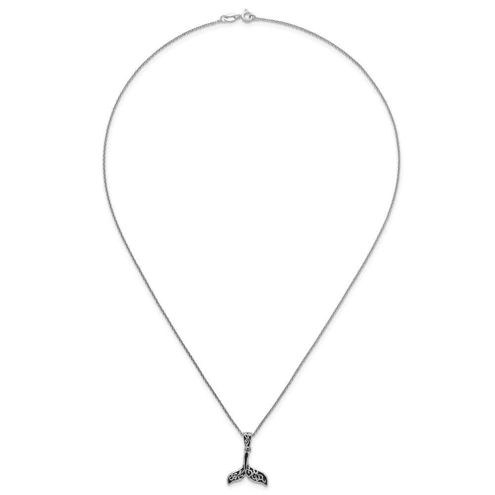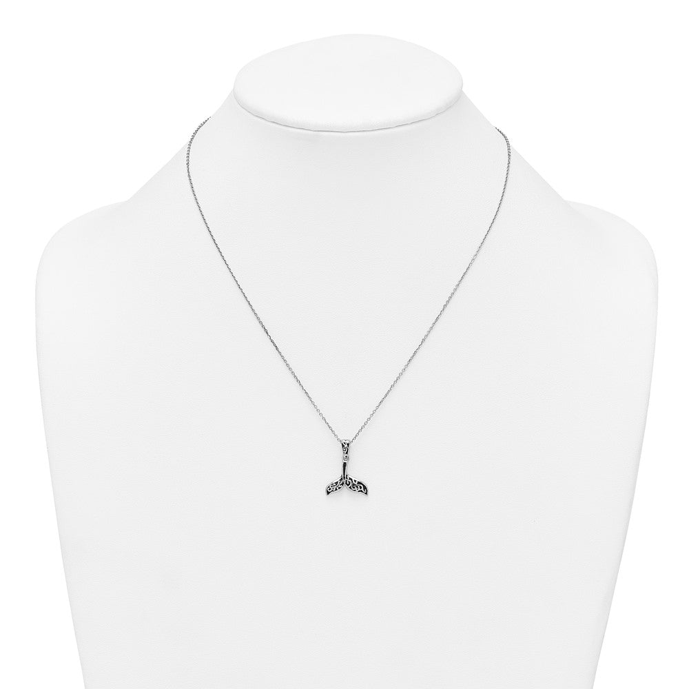 Sterling Silver Rhodium-plated Polished and Oxidized Filigree Whale Tail Necklace