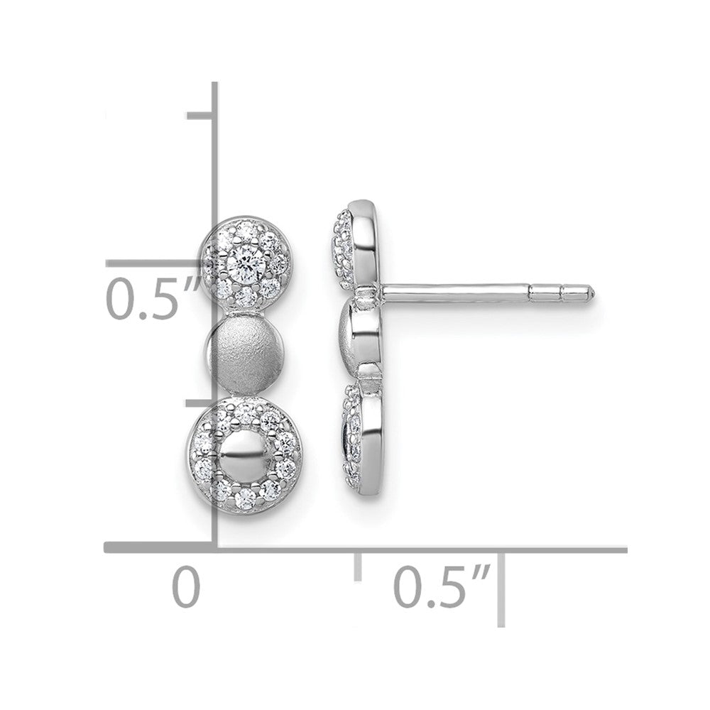 Sterling Silver Rhodium-plated Polished and Satin CZ 3-Circles Post Earrings