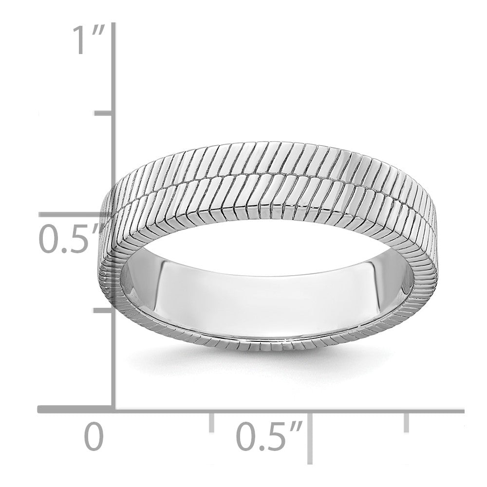 Sterling Silver Rhodium-plated Polished and Textured Band Size 11 Mens Ring