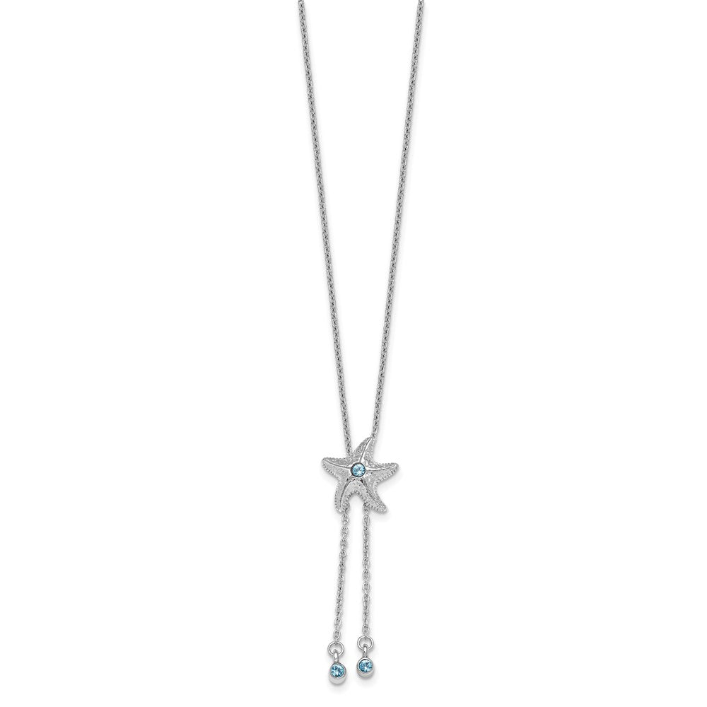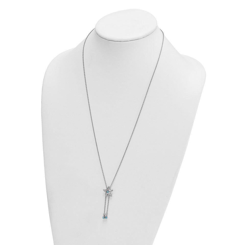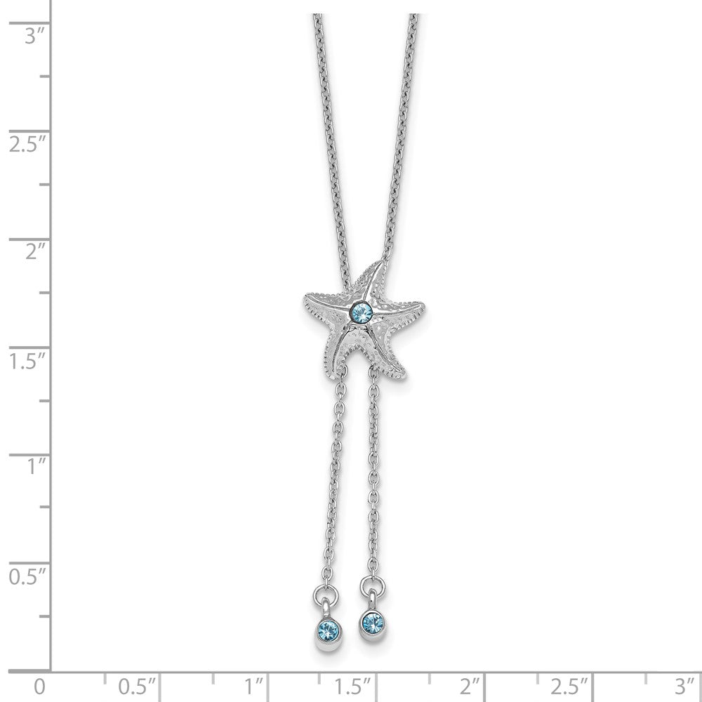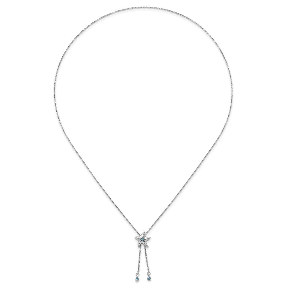 Sterling Silver Rhodium-Plated Polished and Textured Crystal Starfish Adjustable Necklace