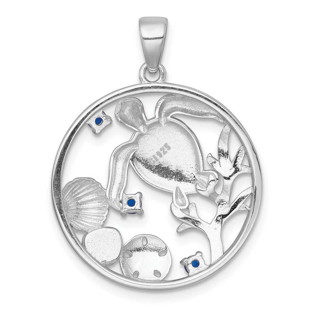 Sterling Silver Rhodium-plated Polished and Textured Larimar and Blue CZ Sealife Pendant