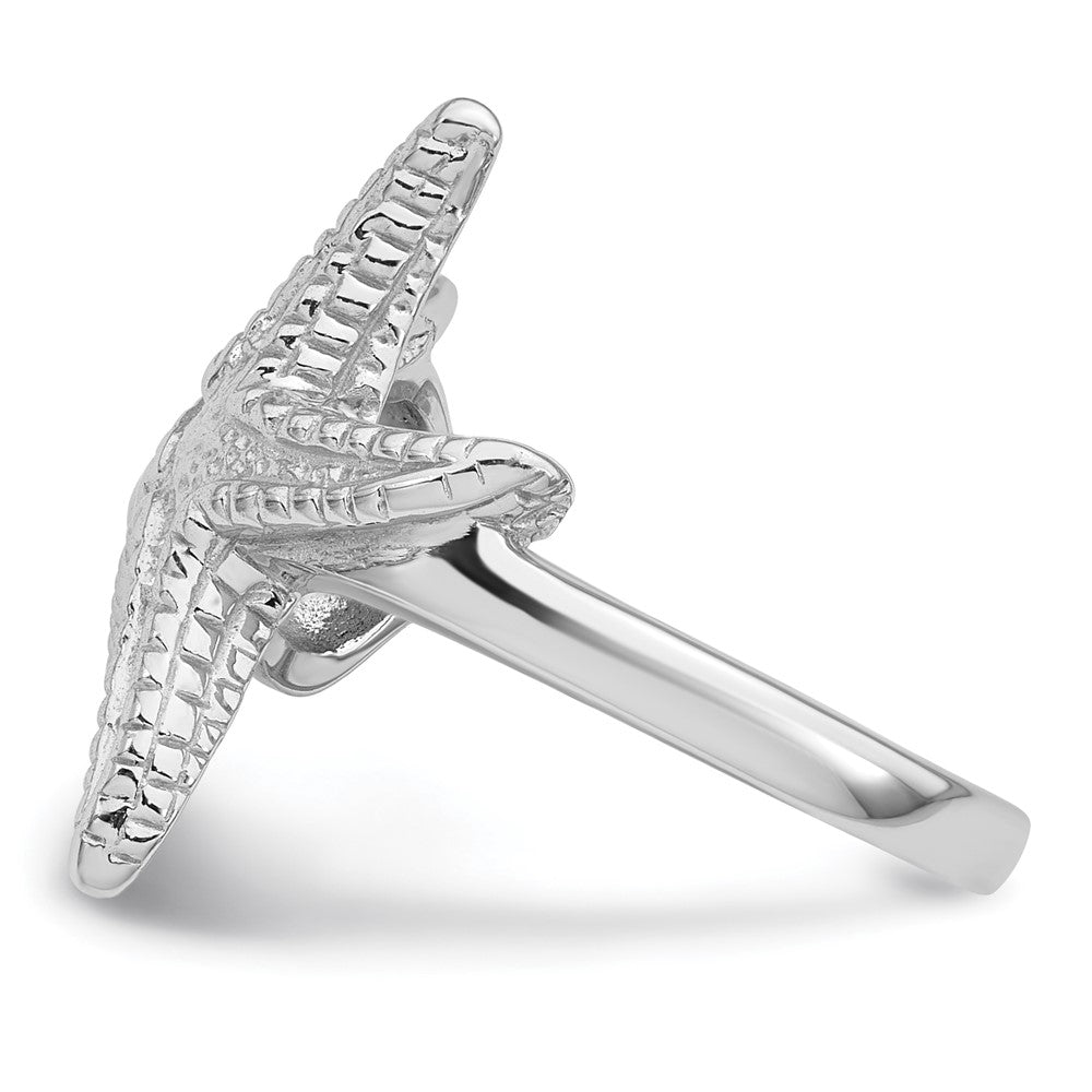 Sterling Silver Rhodium-plated Polished and Textured Sea Shell with Starfish Size 6 Ring