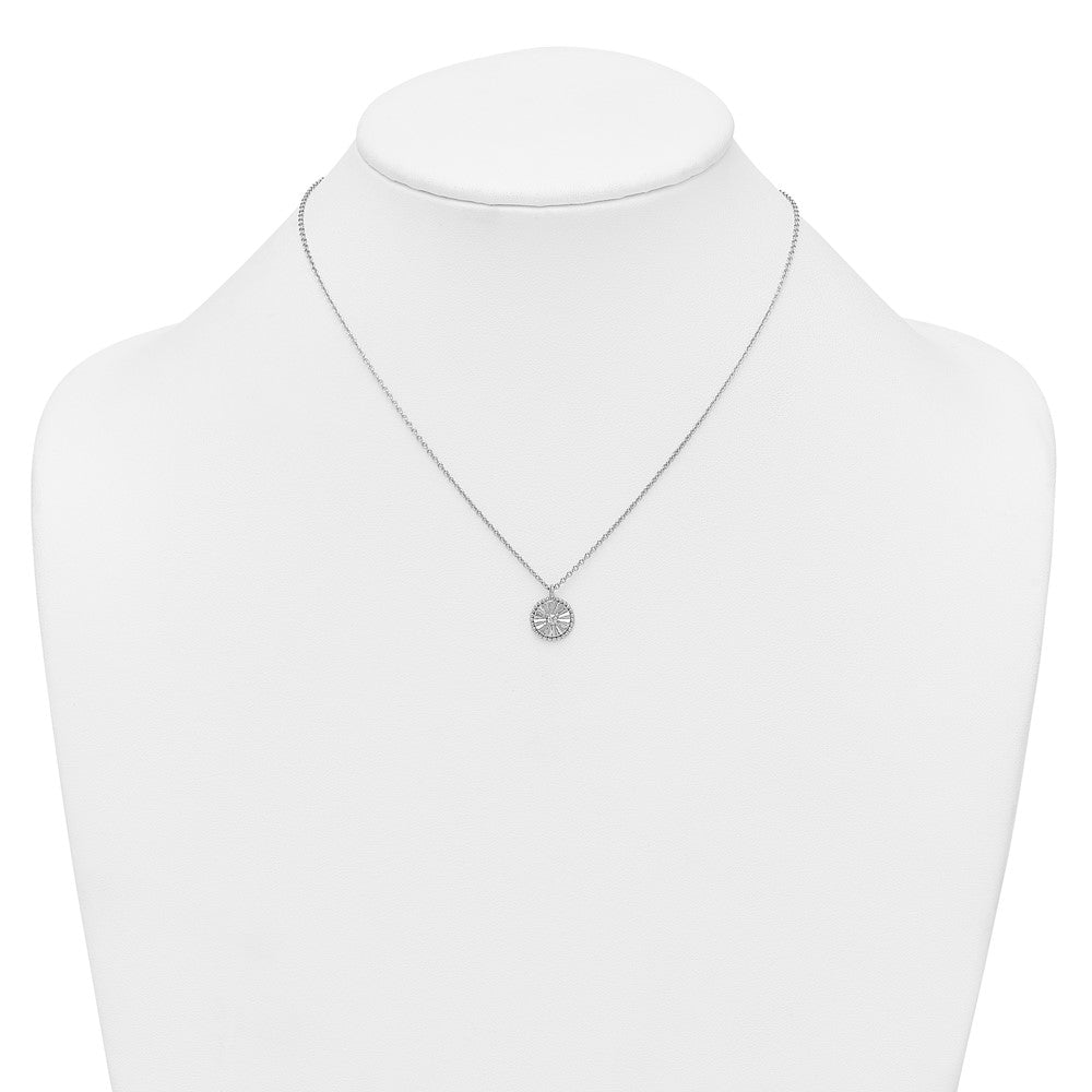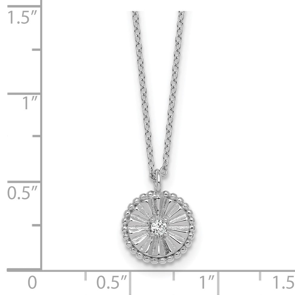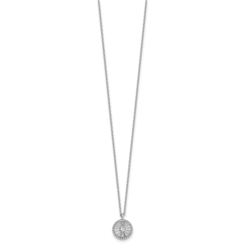 Sterling Silver Rhodium-plated Polished Beaded and Textured CZ Circle with Extension Necklace