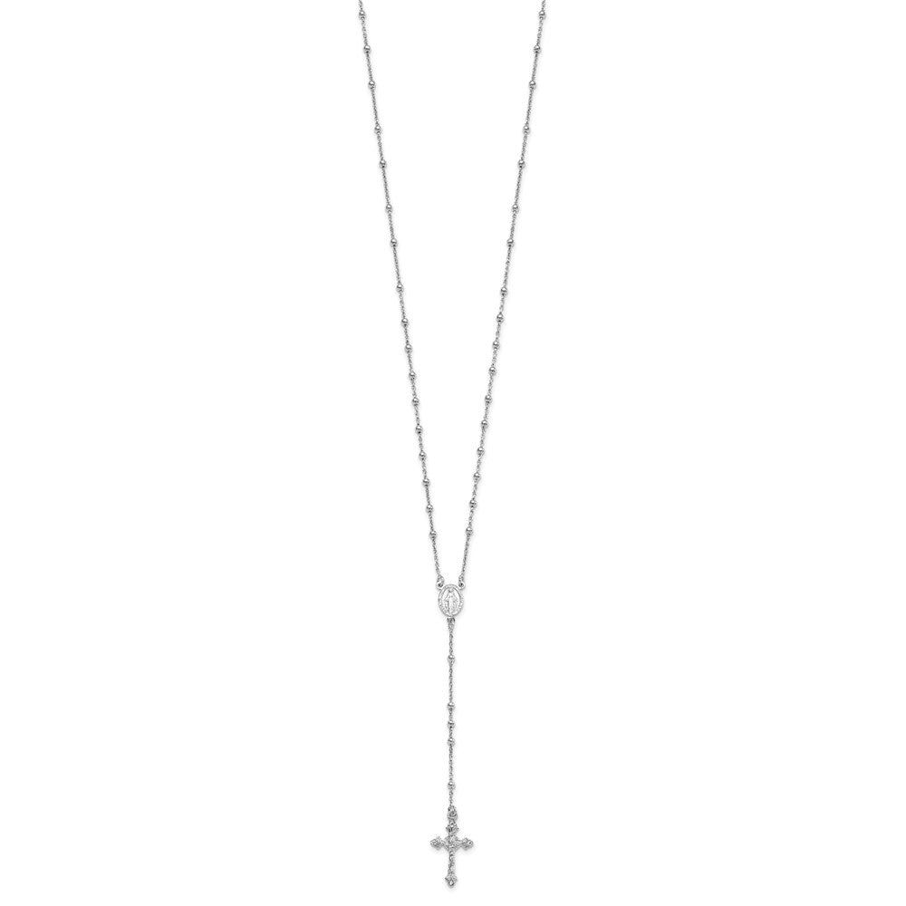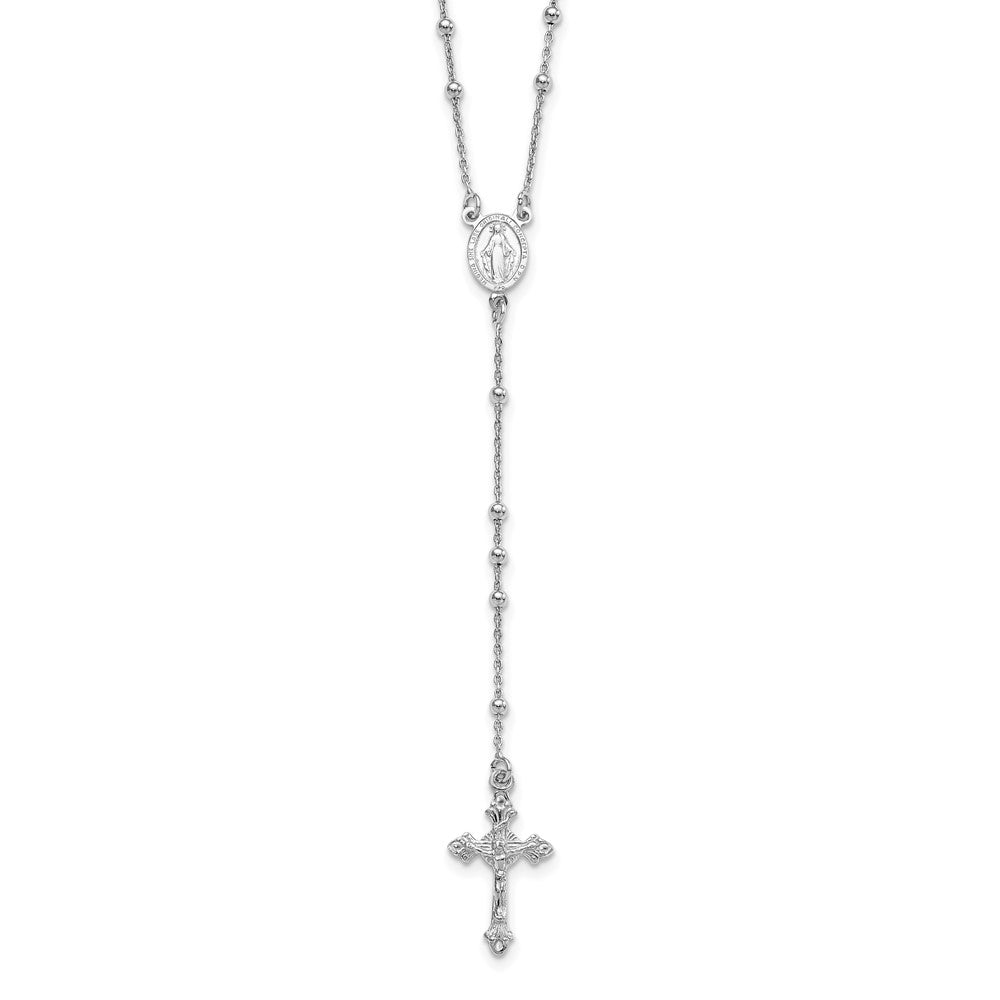 Sterling Silver Rhodium-plated Polished Beaded Rosary Necklace