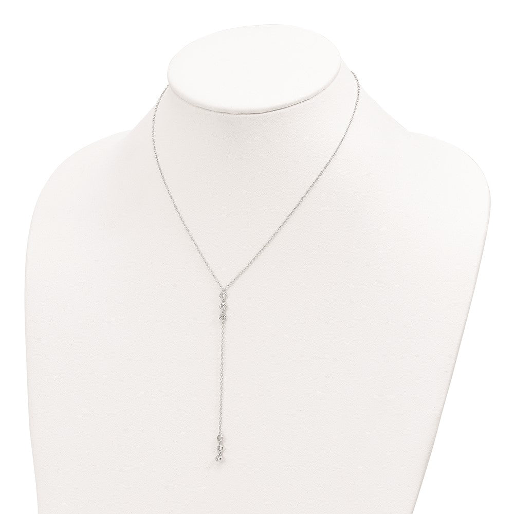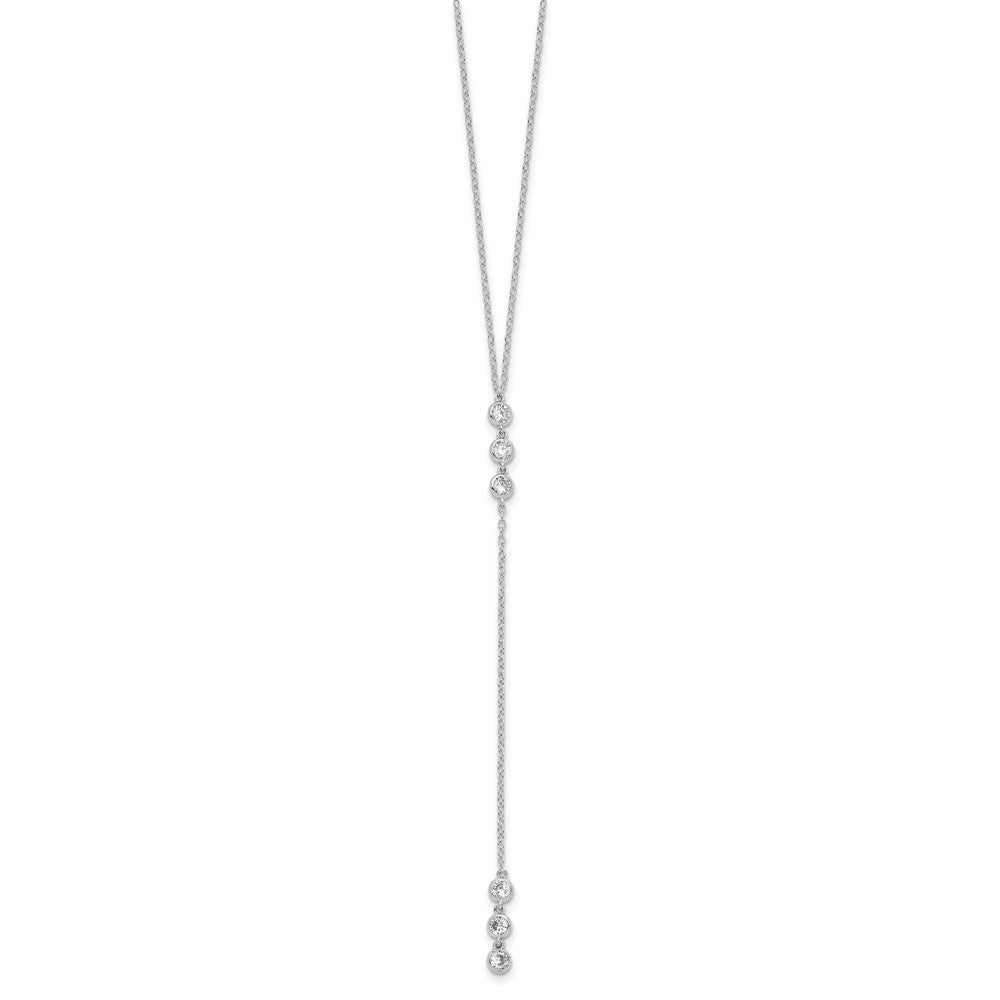 Sterling Silver Rhodium-plated Polished Bezel Set CZ w/2 in ext. Necklace