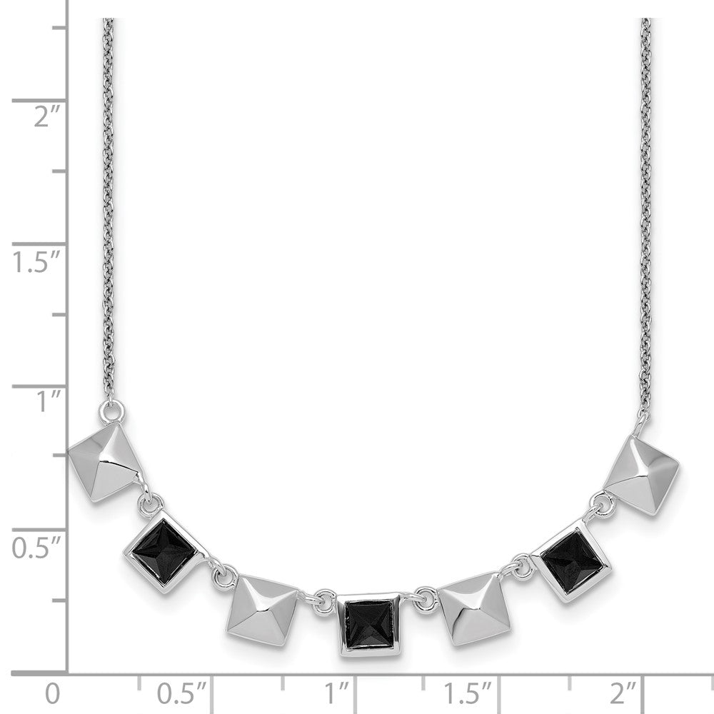 Sterling Silver Rhodium-plated Polished Black CZ and Pyramid Squares 17. Necklace