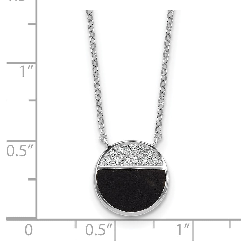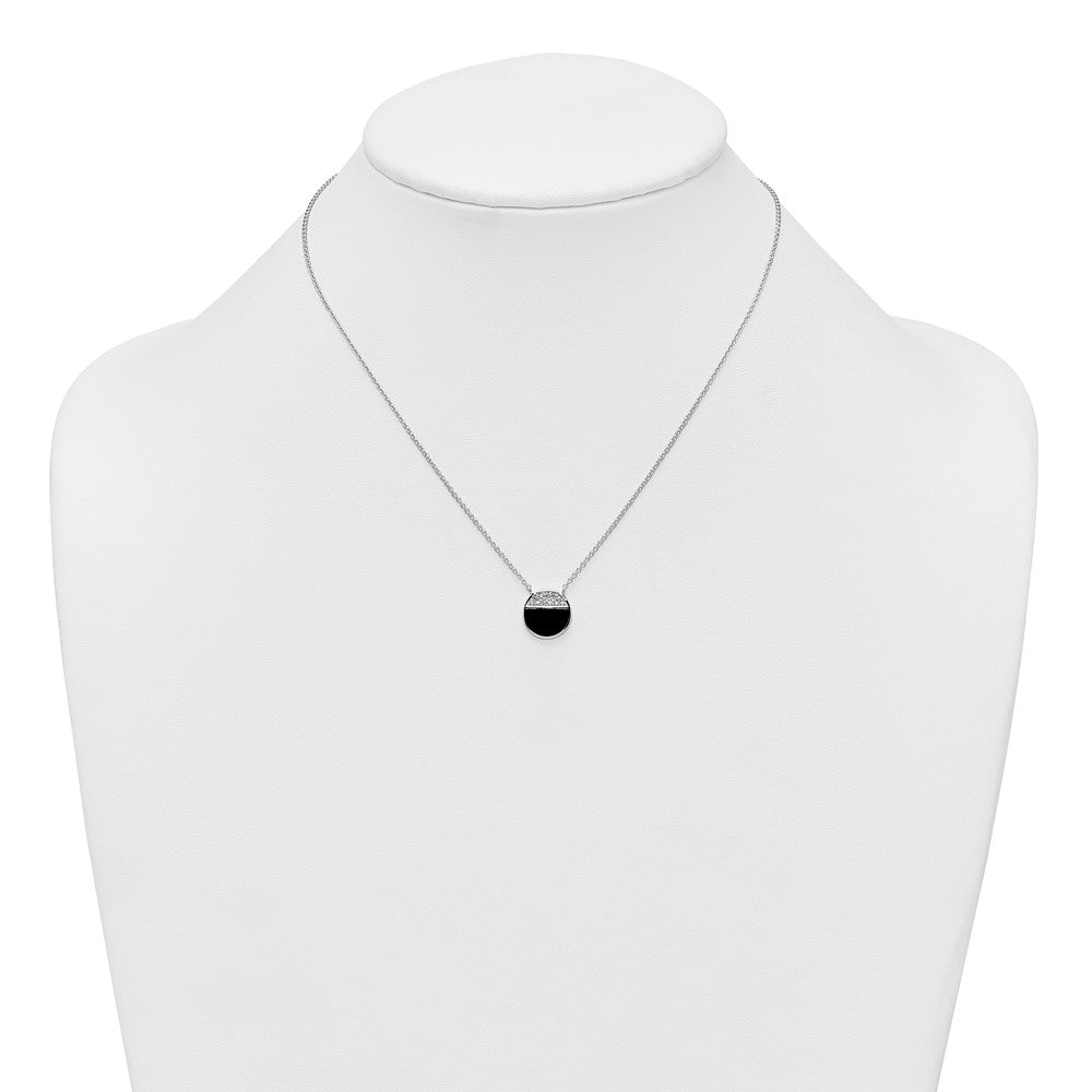 Sterling Silver Rhodium-plated Polished Black Onyx and CZ Circle with Extender Necklace