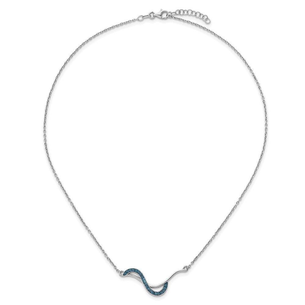 Sterling Silver Rhodium-Plated Polished Blue Crystal Fashion Wave 16. with a extention Necklace