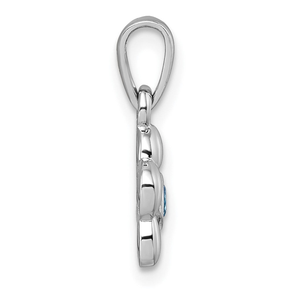 Sterling Silver Rhodium-plated Polished Blue CZ Flower Pendant