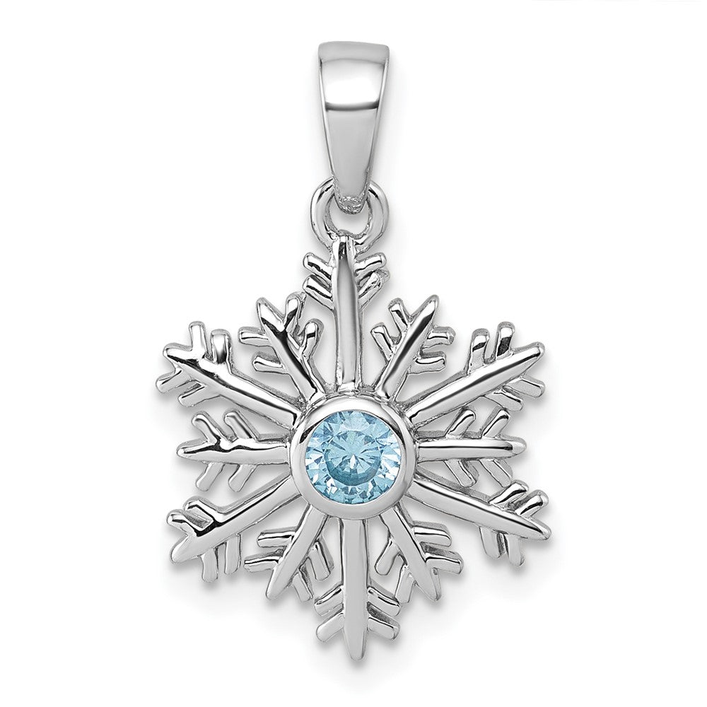 Sterling Silver Rhodium-plated Polished Blue CZ Snowflake Pendant