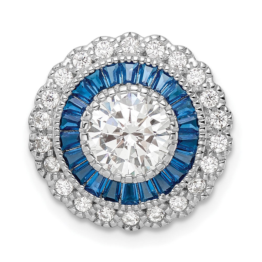 Sterling Silver Rhodium-plated Polished Blue & White CZ Round Chain Slide