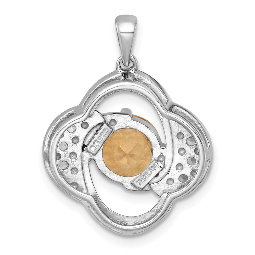 Sterling Silver Rhodium-plated Polished Checker-cut Round Citrine and White Topaz Pendant
