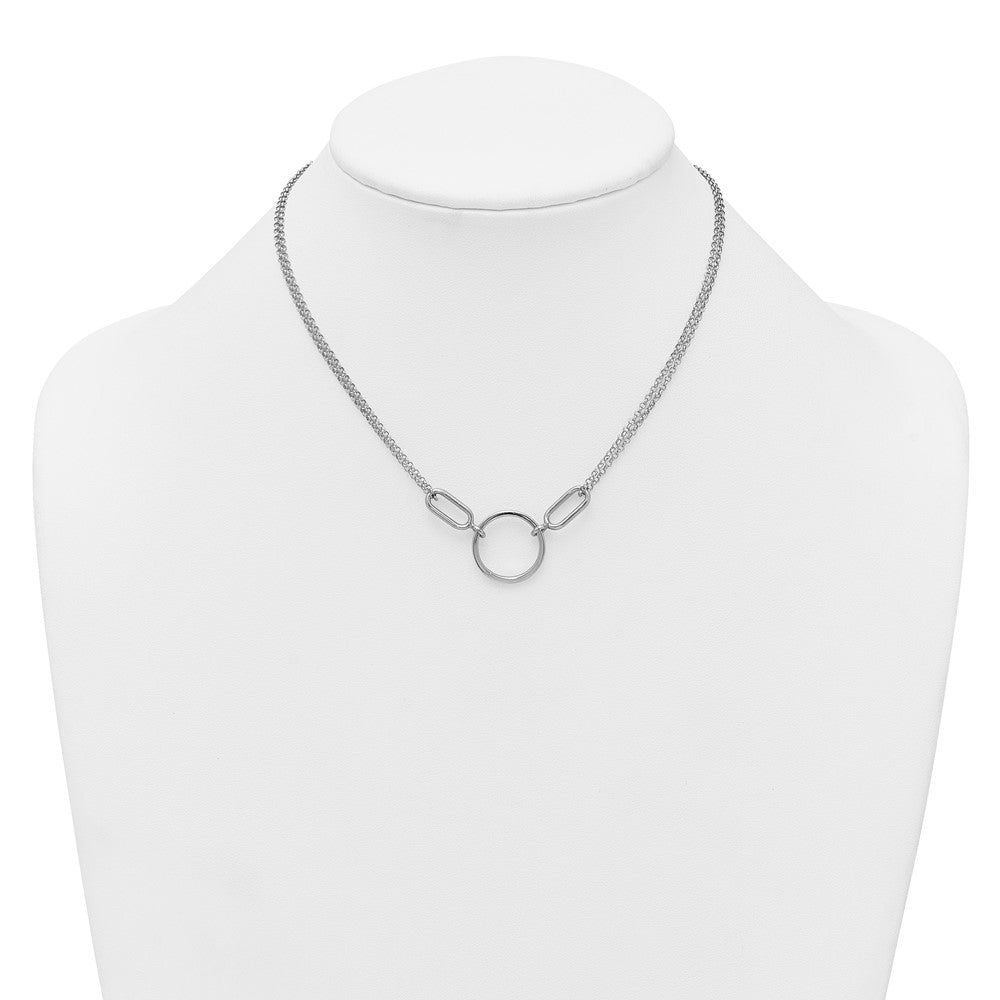 Sterling Silver Rhodium-plated Polished Circle with extension Necklace