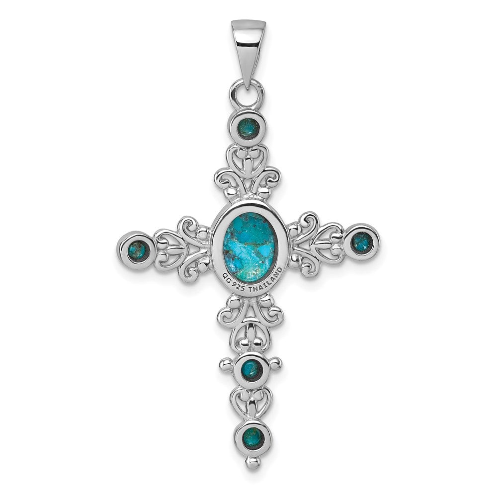 Sterling Silver Rhodium-plated Polished Compressed Turquoise Cabochons Fancy Cross Pendant