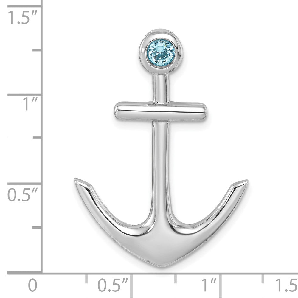 Sterling Silver Rhodium-Plated Polished Crystal Anchor Chain Slide