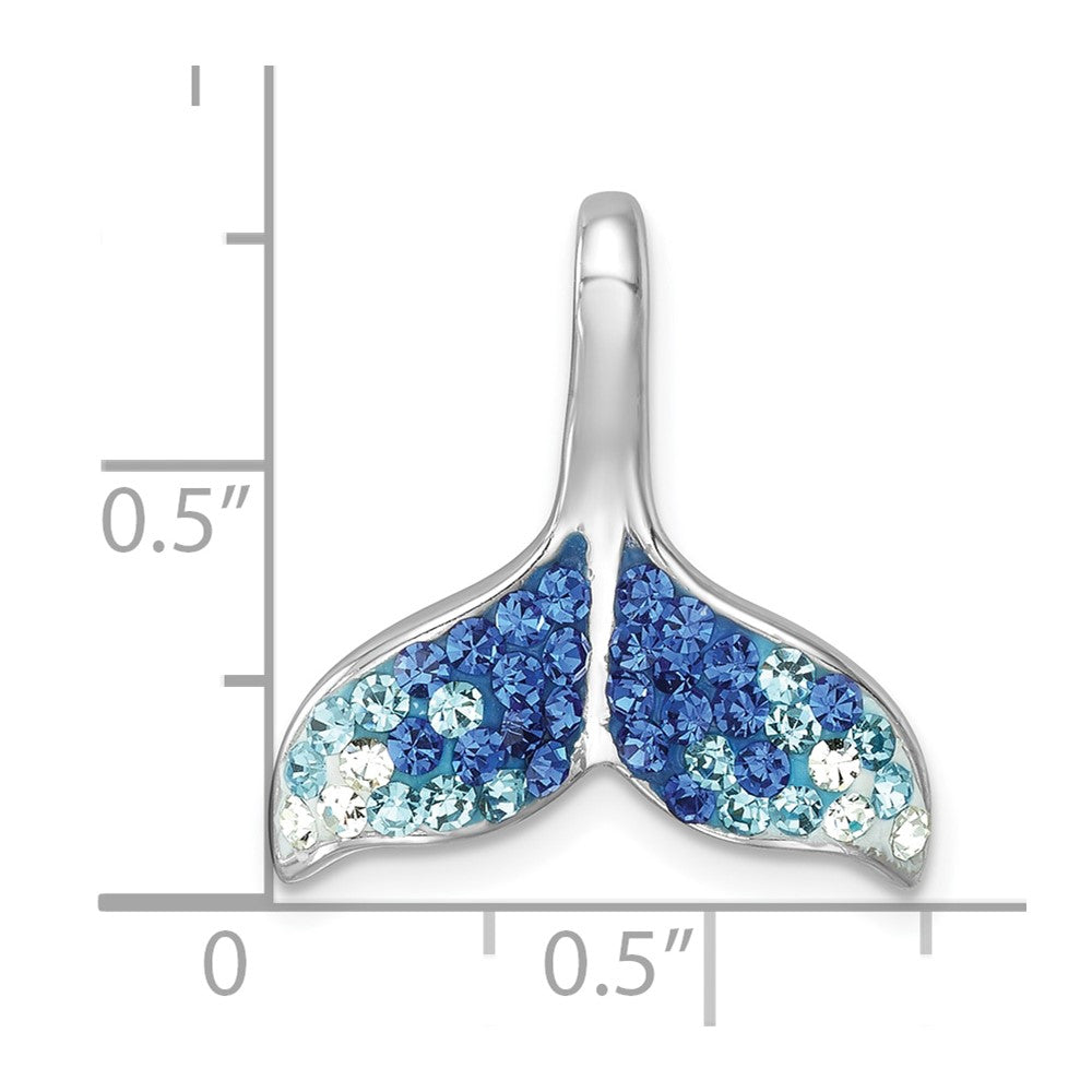 Sterling Silver Rhodium-Plated Polished Crystal Whales Tail Pendant