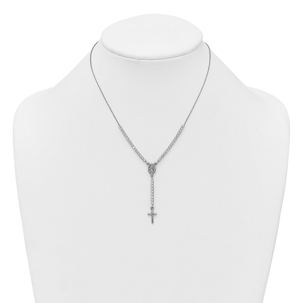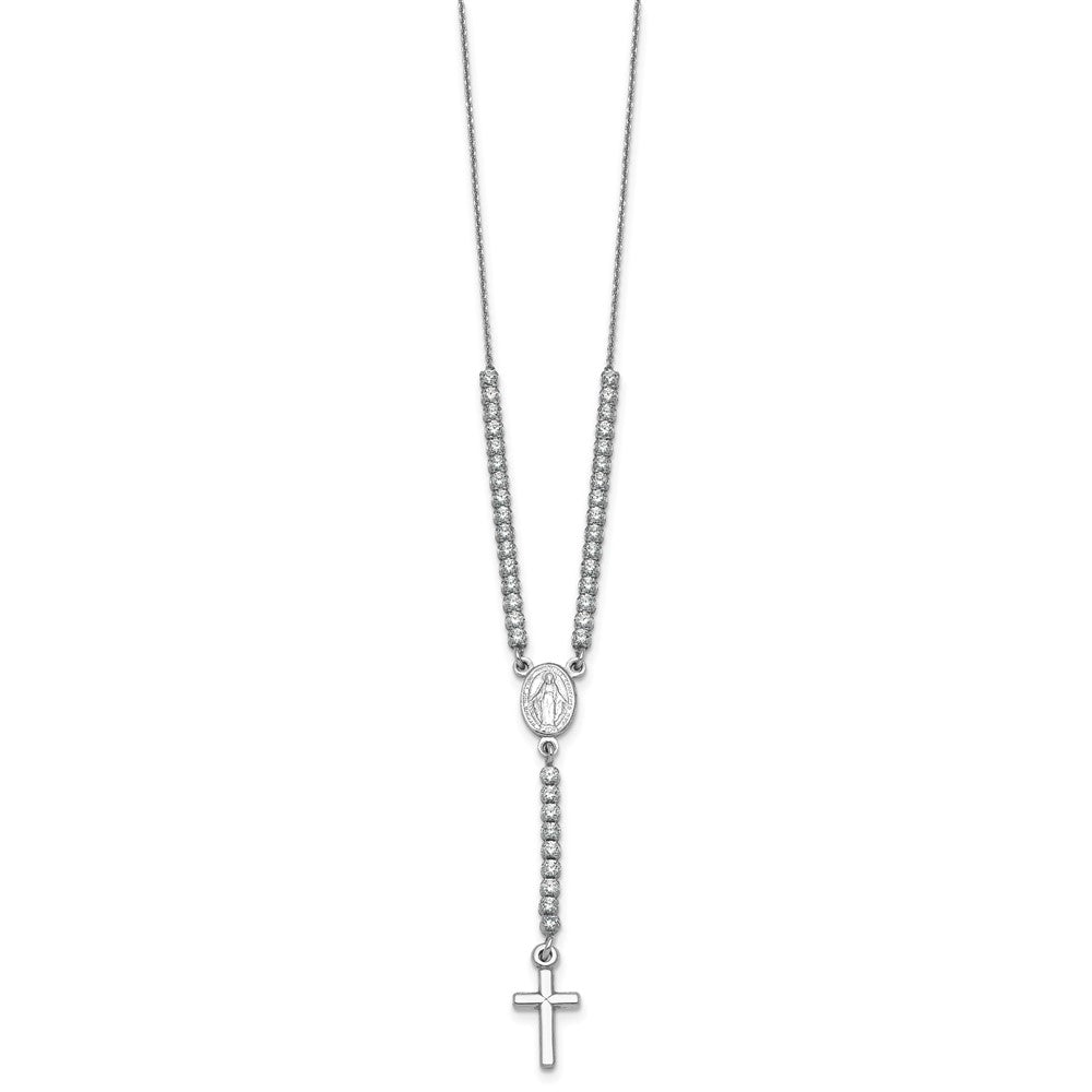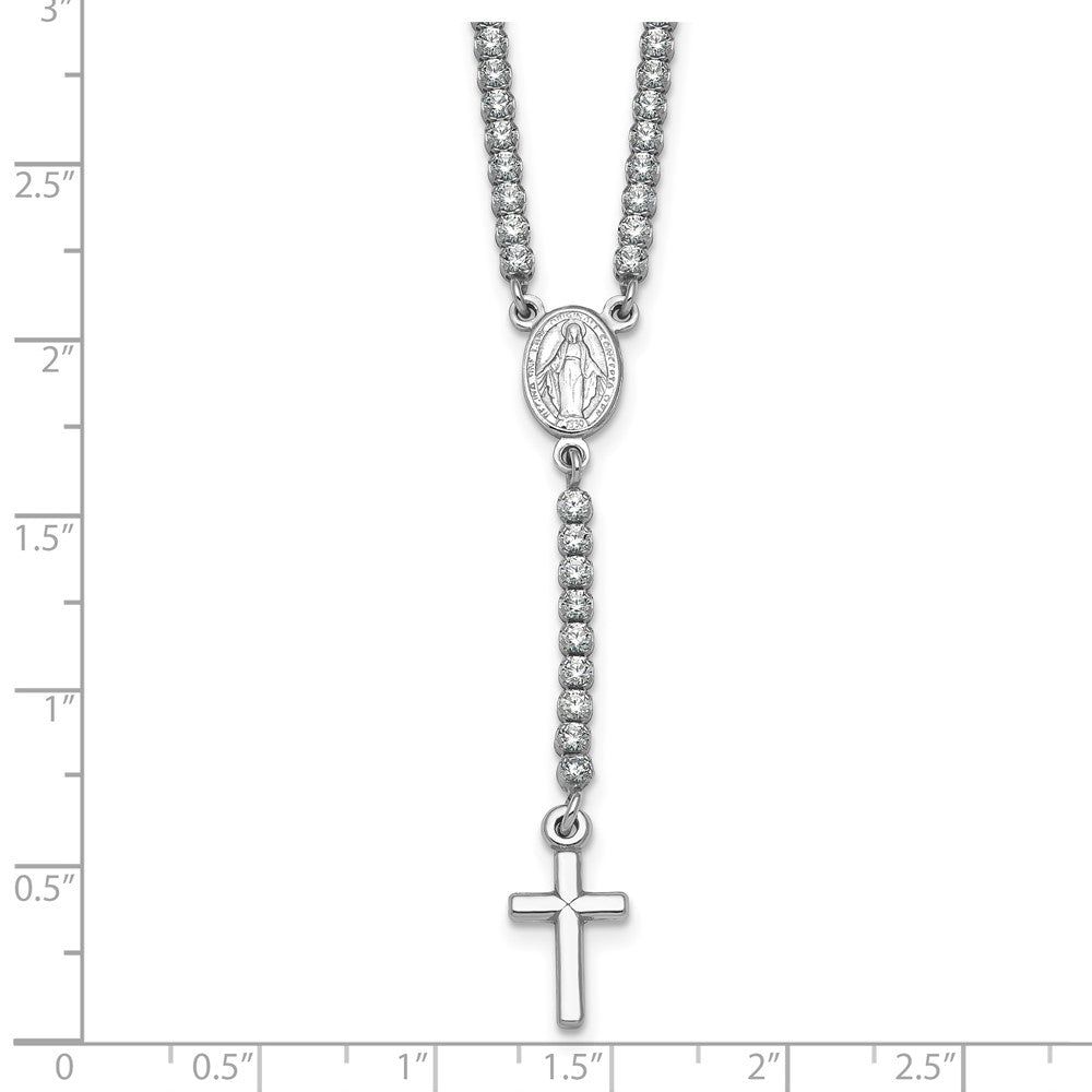 Sterling Silver Rhodium-plated Polished CZ 15. with extender Rosary Necklace